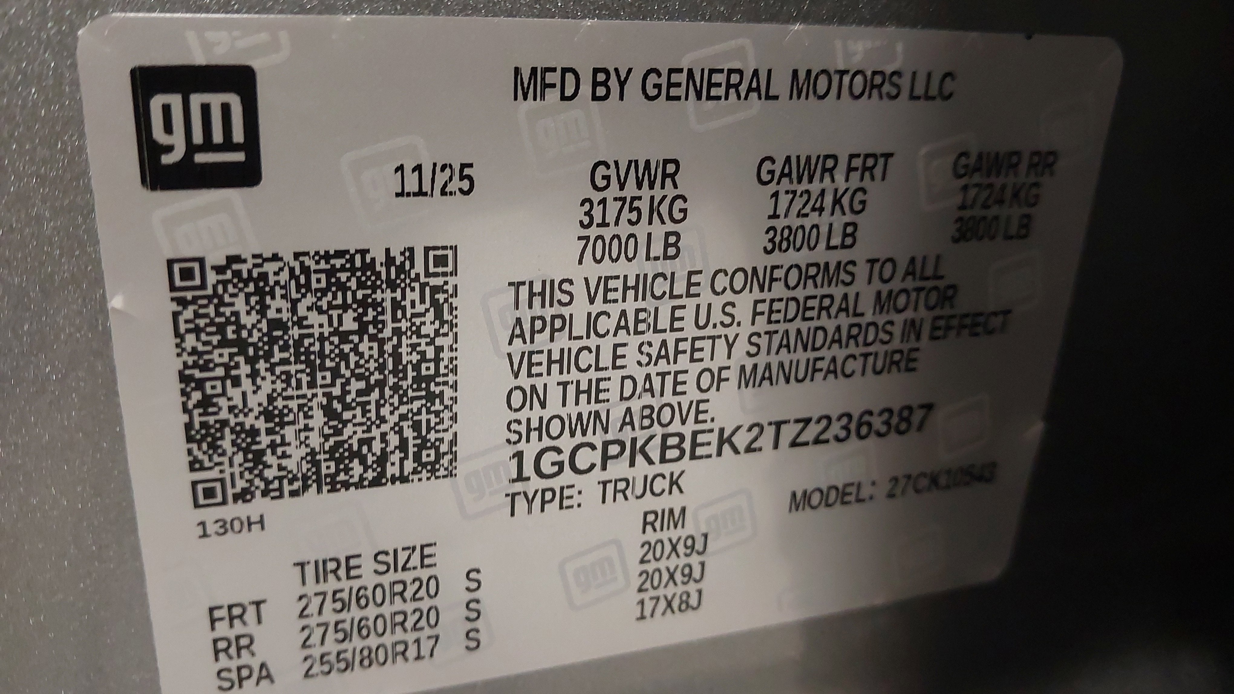 1GCPKBEK2TZ236387