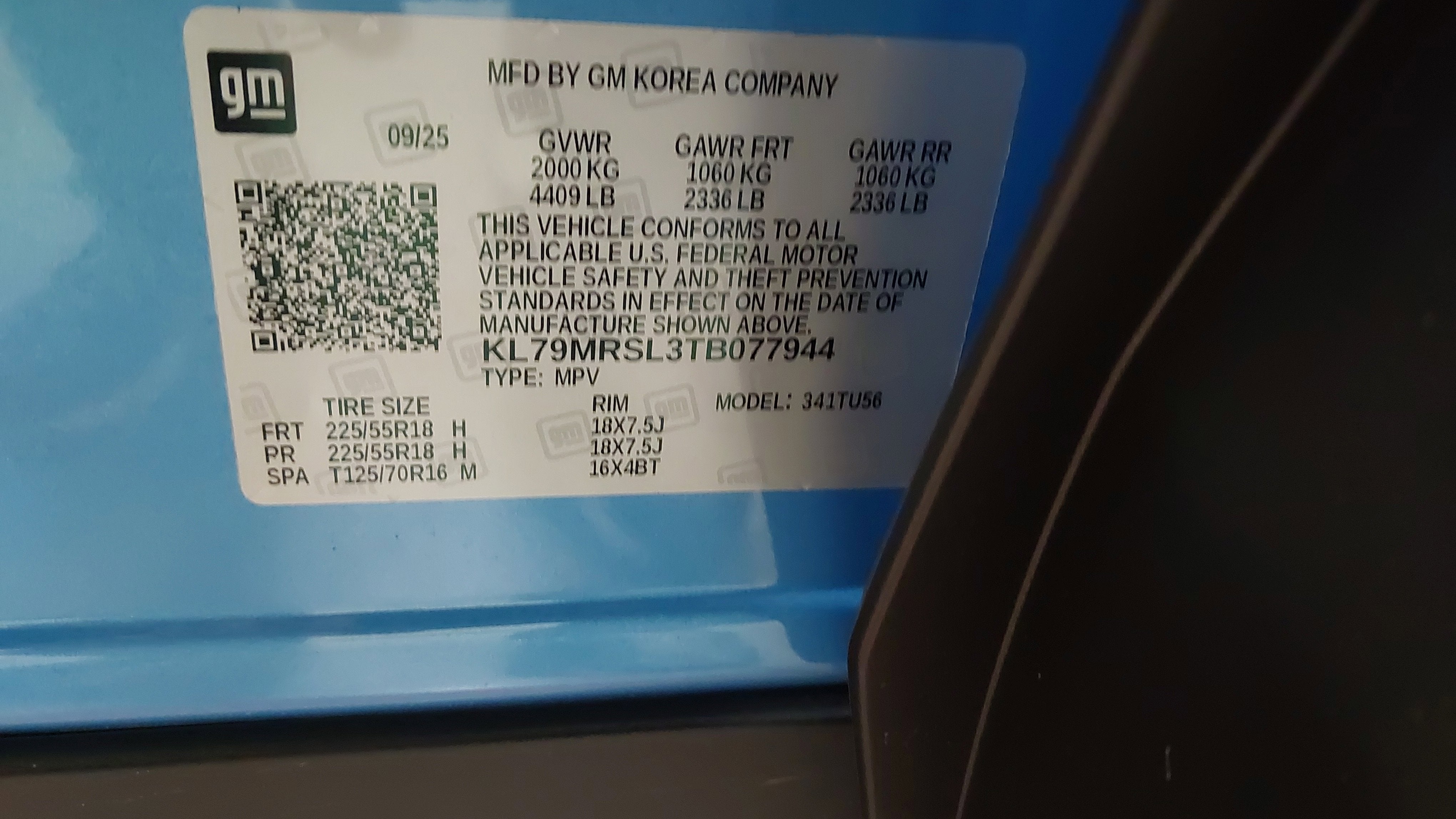 - Tires, 225/55R18 all-season, blackwall