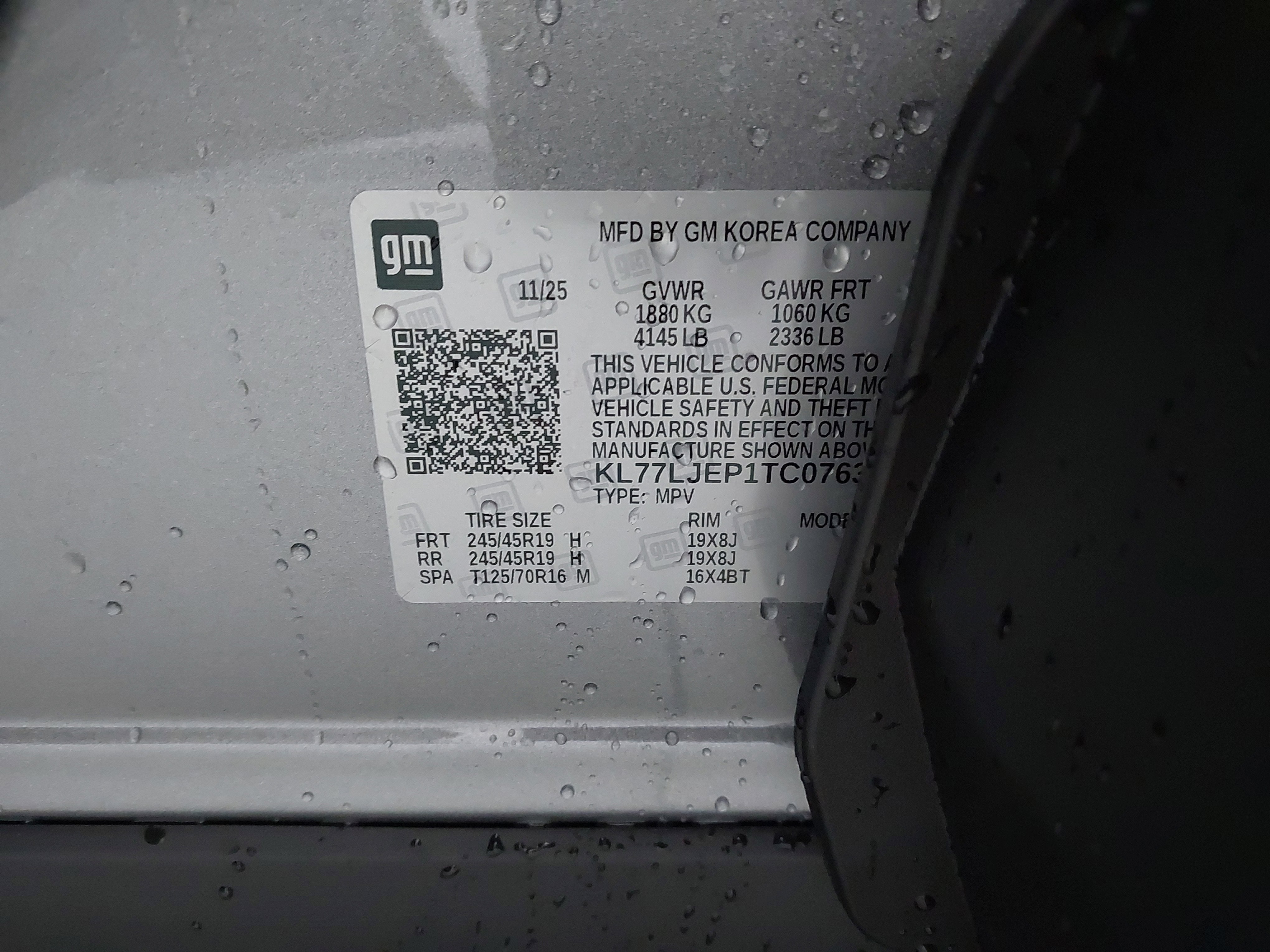 - Tires, 245/45R19 all-season, blackwall